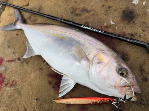 まずはジグパラ150gでカンパチの若魚シオ!