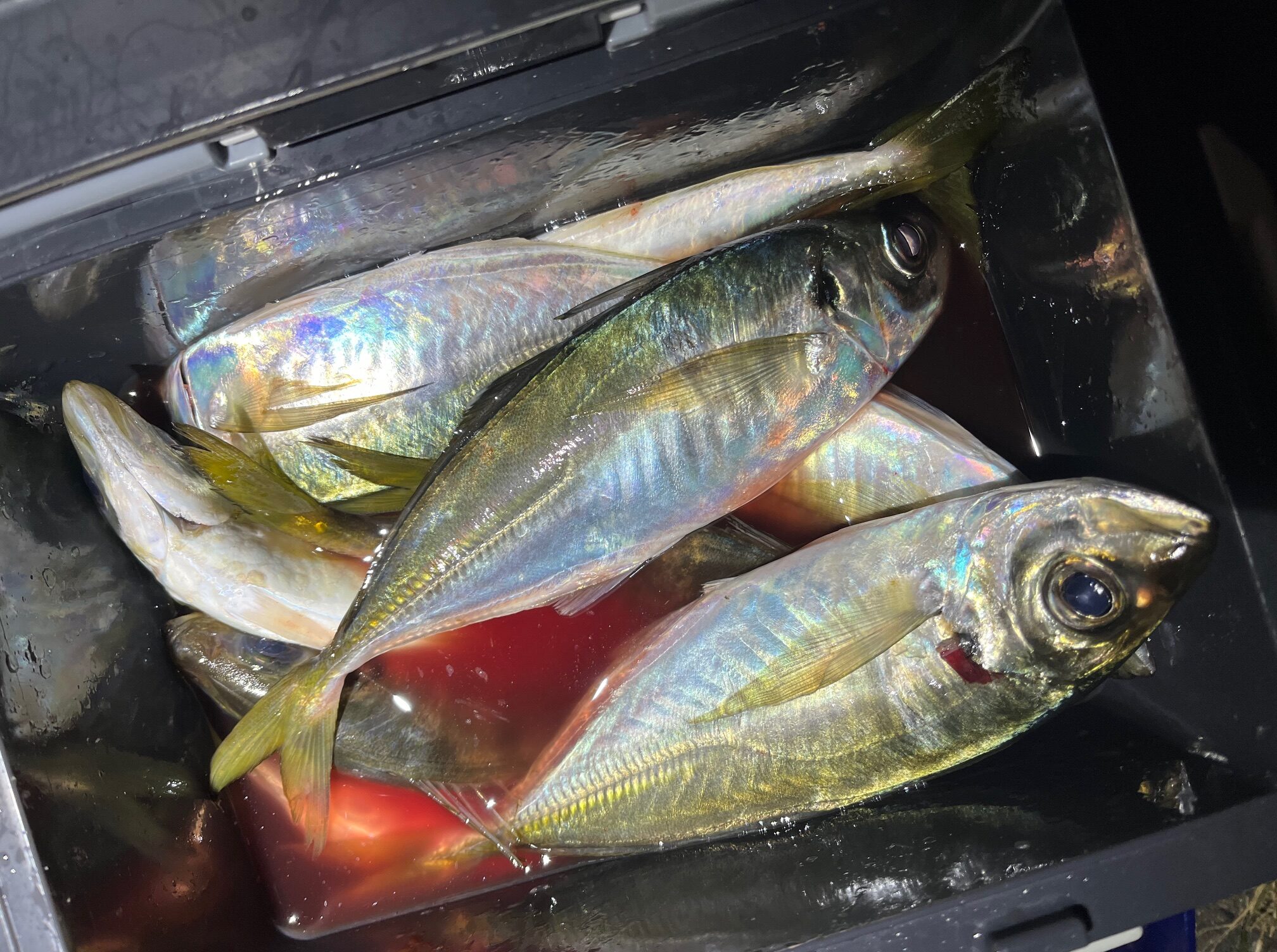 案の定、これ以上アジを入れると保冷材が入らないので納竿しましたw