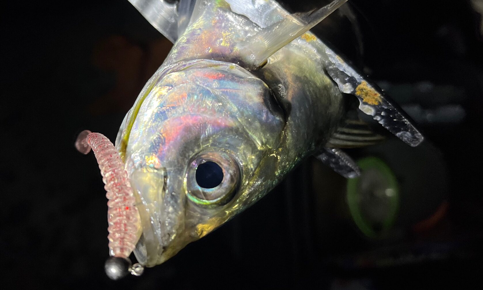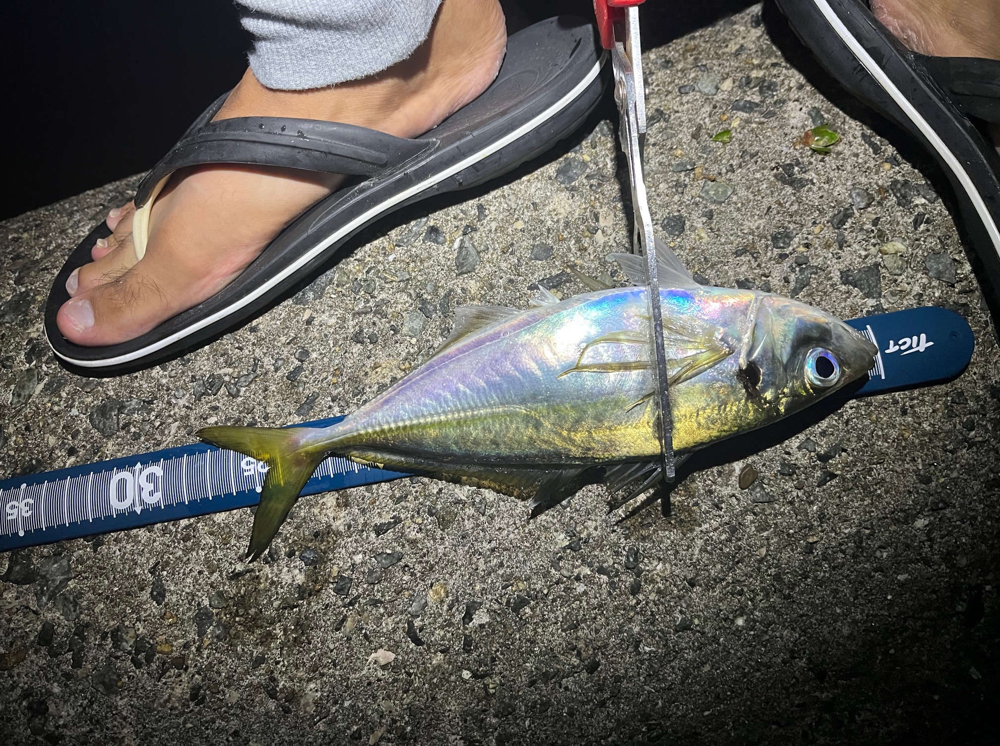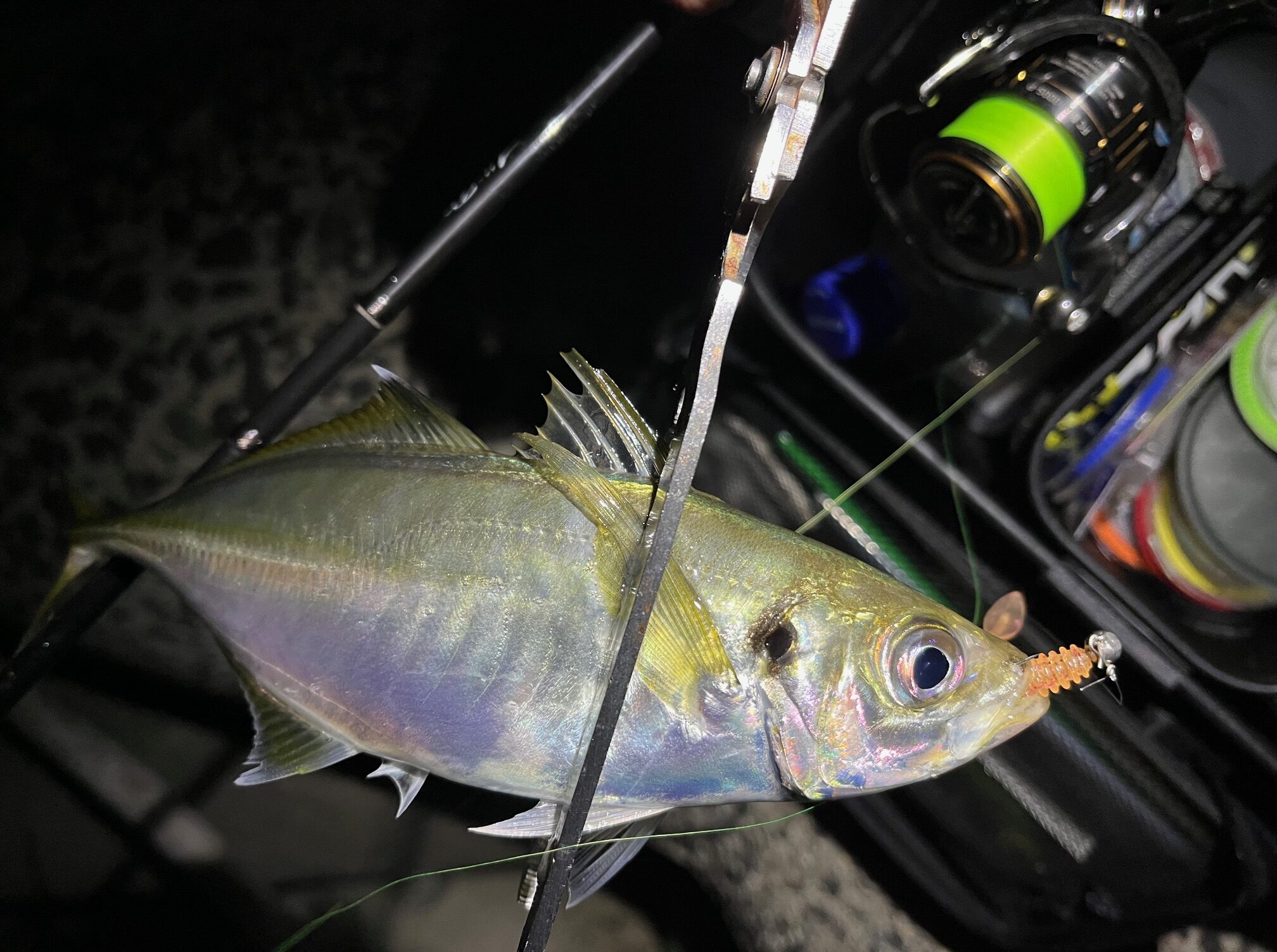 ここのデカアジは表層で釣れる事が多いのですが、釣れたのは沖のボトム。