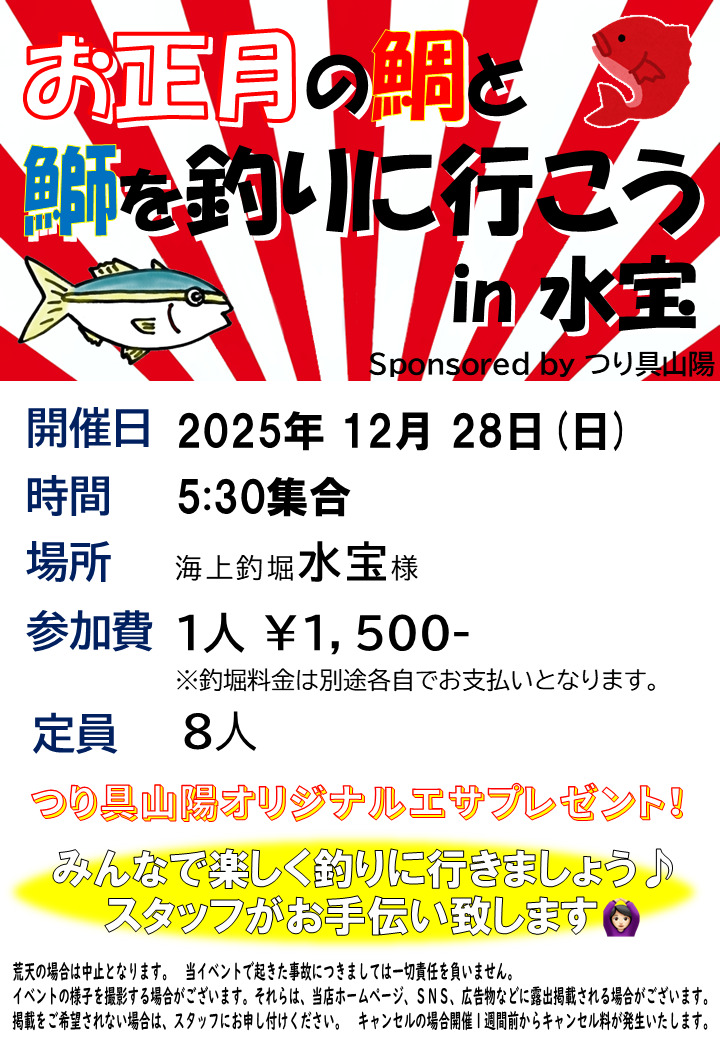 12/28㈰ お正月の鯛と鰤を釣りに行きましょう♪